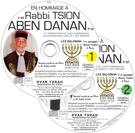 88107 – 02:18:34 – En Hommage à Rabbi Tsion BEN DANAN zatsal, rappelé auprès de ses Pères. 21 GÉNÉRATIONS DE JUGES RABBINIQUES EN DESCENDANCE DIRECTE L’ONT PRÉCÉDÉ – les Shloshim à la synagogue Ohaley Yaakov à Paris le 10 Tévèth 5760. Avec les contributions des Rabbanim shlita : Rav Reouven OHANA,Rav Yits’hak KATS, Rav Messod HAMOU, Rav David MESSAS.