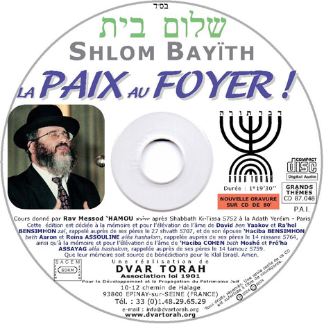87048 – 1:29:56 – C’était après Chabbath, le 20 fév.’92 dans le cadre des conférences organisées par « Adath Yereïm – CISO – Igoud ‘Harédi  » rue Cadet à Paris, sous le titre initial : Chalom et Bayïth – font-ils bon ménage ? Par Rav Messod ‘HAMOU.