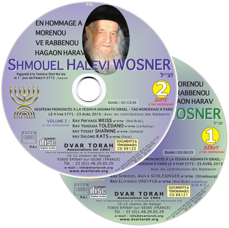 88121 – 02:22:51 – En Hommage à Morénou VeRabénou HaGaon HaRav Shmouel Halévi WOZNER zatsal, Rappelé à la Yeshiva Shekl Maala Rishon Shel Pessa’h 5775. Hespédim prononcés à la Yeshiva Nishmath Israëm – Yad Mordekhaï à Paris le 4 Iyar 5775 – 23 avril 2015, avec les contributions des Rabbanim shlita : Rav Shmouel Akiva SCHLESINGER, (Strasbourg), Rav Eliyahou DREYFUS (Bné-Brak), Rav Pin’hass WEISS (Bné-Brak), Rav Yehouda TOLÉDANO (Le Raincy), Rav Yossef SHAÏNINE (Ashdod), Rav Shlomo KATS (Paris).