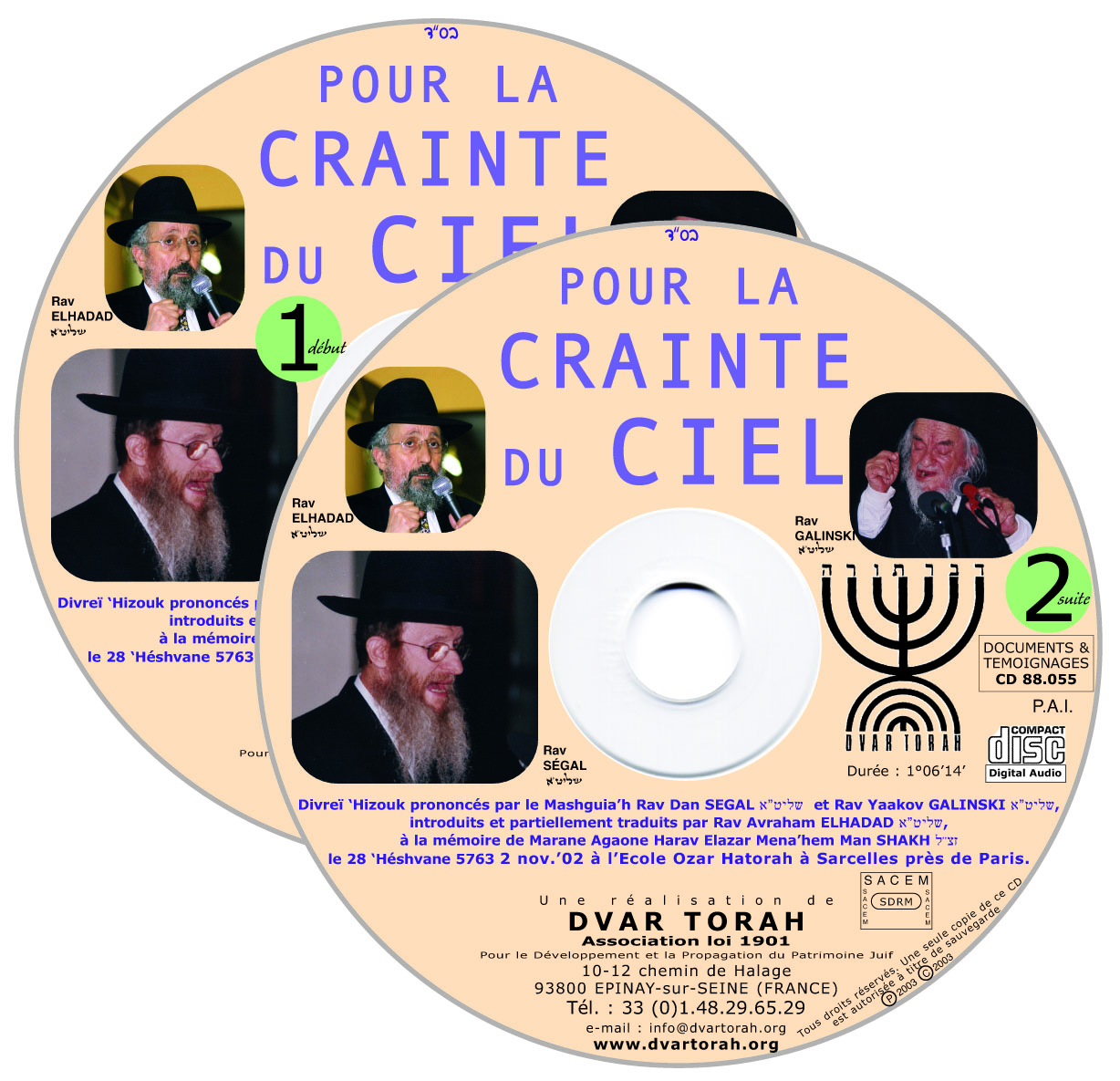88054 – 2:12:12 – « Divreï ‘Hizouk prononcés par le Mashguia’h Rav Dan SEGAL et Rav Yaakov GALINSKI, introduits et partiellement traduits par Rav Avraham ELHADAD, à la mémoire de Marane Agaone Harav Elazar Mena’hem Man SHAKH zatsal le 28 ‘Héshvane 5763 2 nov.’02 à l’Ecole Ozar Hatorah à Sarcelles près de Paris. «