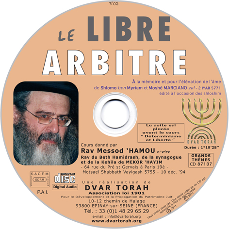 87107 – 1:31:20 – de cours magistral donné par Rav Messod HAMOU Rav du Beth Hamidrash, de la synagogue et de la Kehila de MEKOR ‘HAYIM – 64 rue du Pré st Gervais à Paris 19è- Motsaeï Shabbath Vayigash 5755 – 10 déc. ‘94(elle a déménagé depuis au 75 rue Compans).