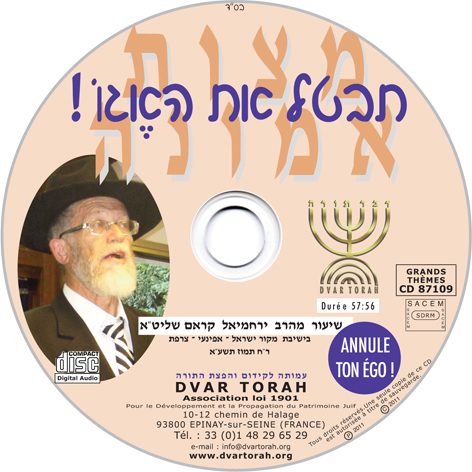 87109 – 57:56 – d’un cours magistral en hébreu donné par Rav Yera’hmiel KRAMM lors de sa venue à la Yeshiva Mekor Israël à Epinay le Rosh ‘Hodesh Tamouz 5771 – 19 juillet 2011